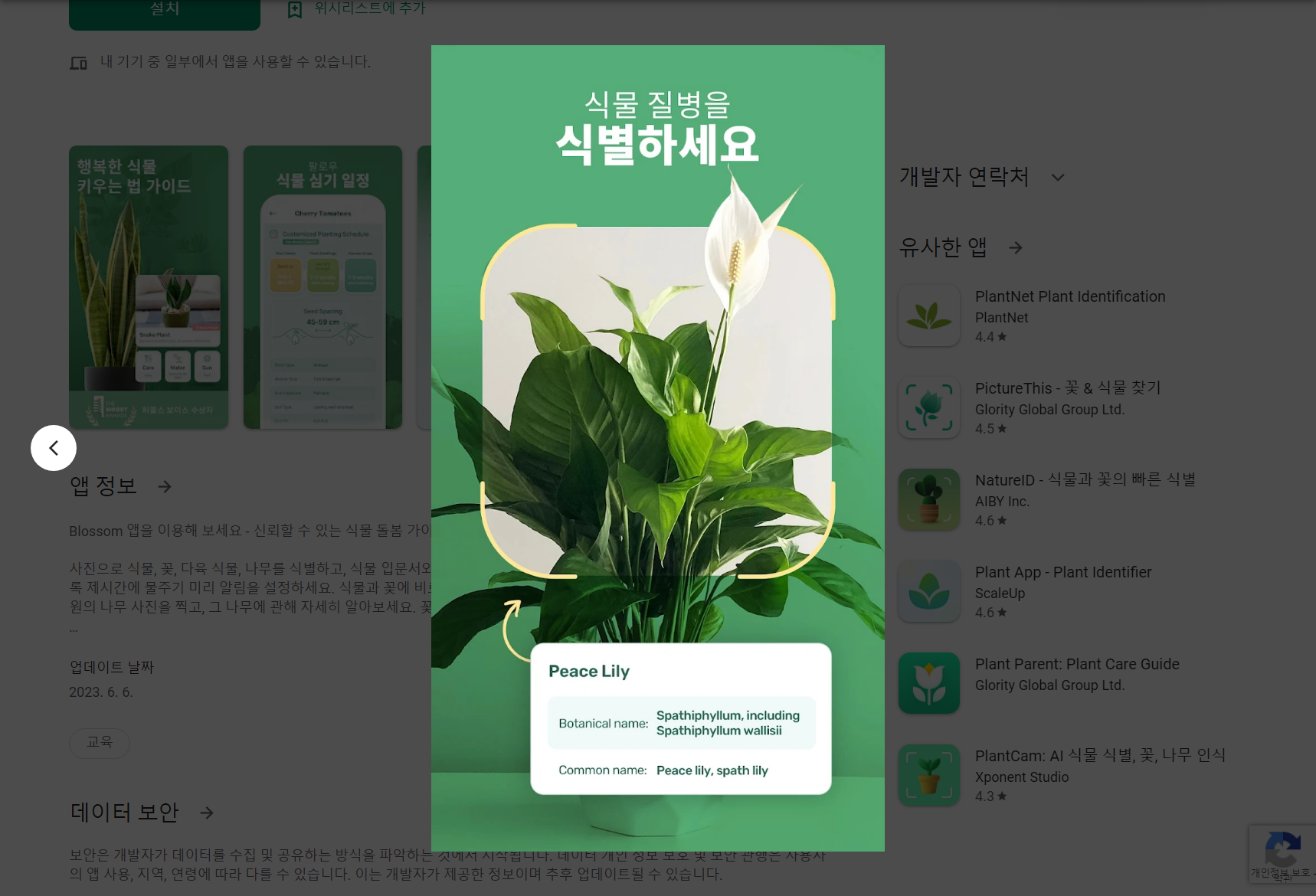 Blossom - 식물 식별 앱 정보